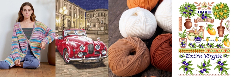 Eva Rosenstand, Dimensions. Maia, Lanarte, Permin, Royal Paris, Sunset, Anchor, Heritage, Popcorn, Vervaco, DMC, Maria van Scharrenburg, Le Suh, Pako, Nouvelle, Rico, Thea Gouverneur, Riolis, Luca-S, Orchidea, Idena, Oven, Letistitch.